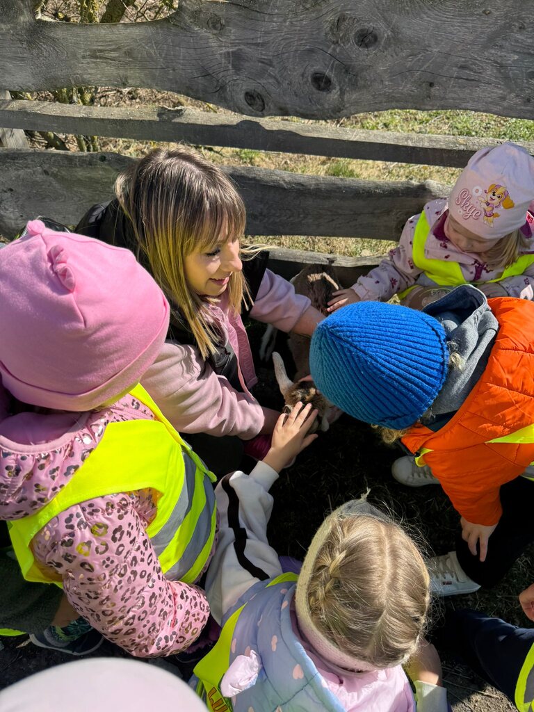 Był czas na obcowanie z kózkami i tutaj nasze serce skradły najmniejsze słodziaki ze stada🐐💚 Degustowaliśmy wyrobów z koziego mleka🧀 Wśród naszych przedszkolaków znaleźliśmy prawdziwych koneserów🥰 Smak koziego serka wyjątkowo przypadł im do gustu🤗